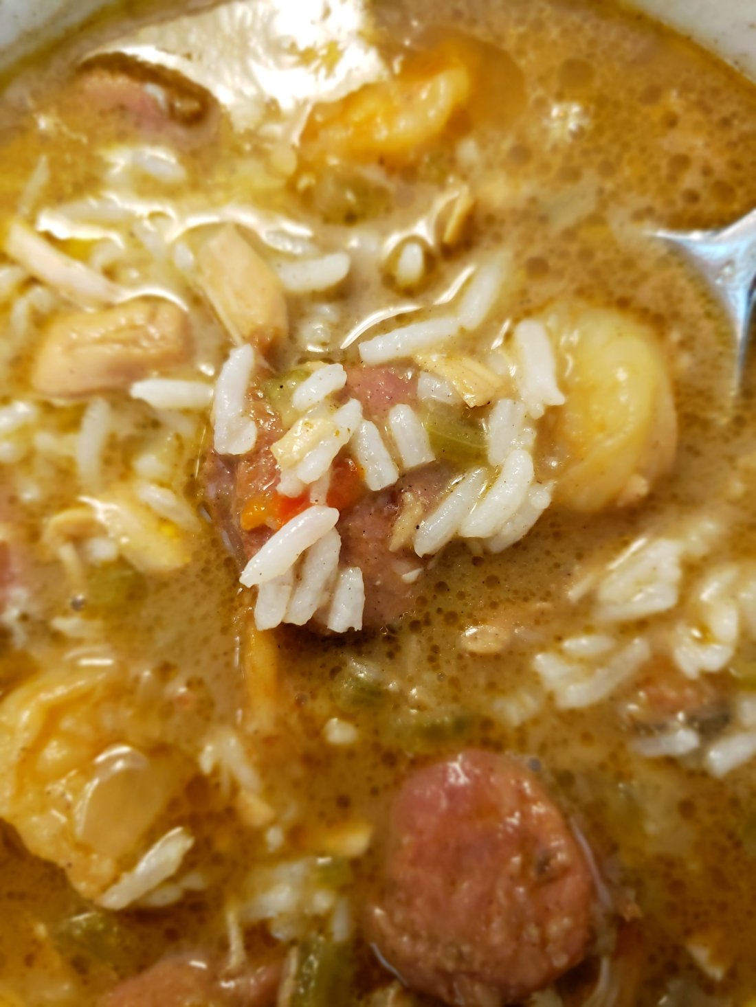 But I was gonna try anyway. I made the dark roux (it probably could have gone a bit darker but I got scared). I may have added a bit too much liquid. I added the trinity, garlic, the creole seasoning. All the proteins. It looked…pretty killer tbh.